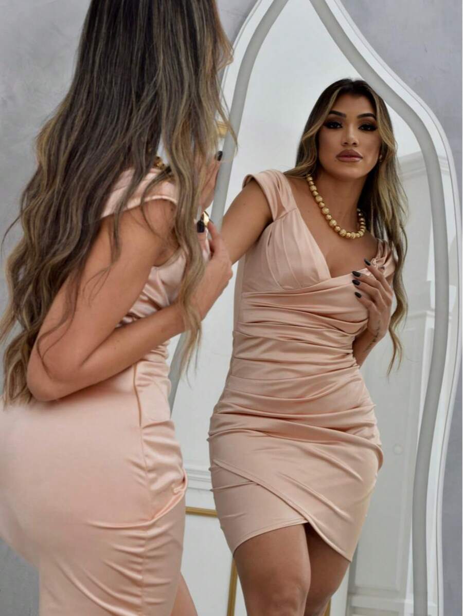 Produzido em tecido de alta qualidade e com leve elasticidade , o vestido garante conforto e excelente ajuste ao corpo, sendo perfeito para graça em que elegância e estilo caminham lado a lado.