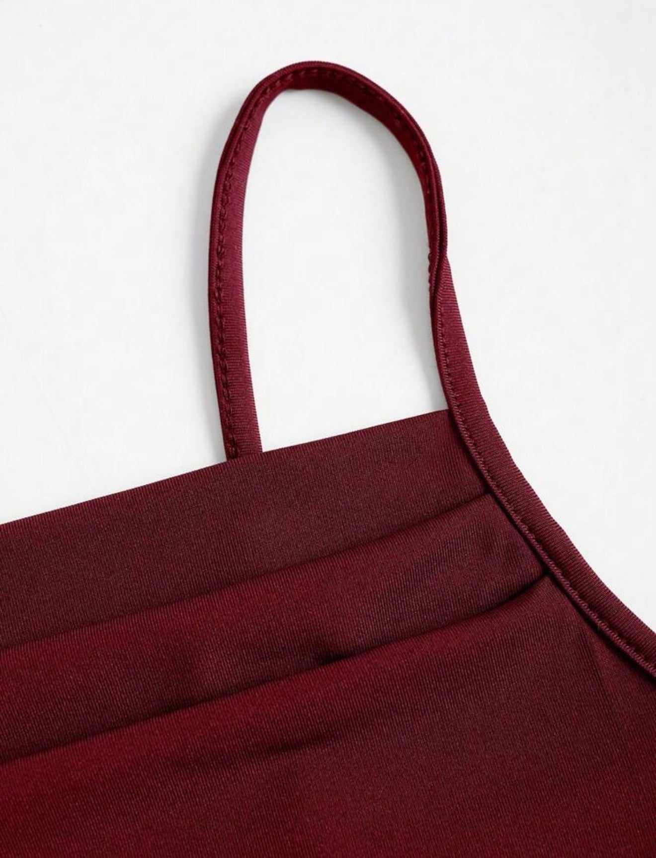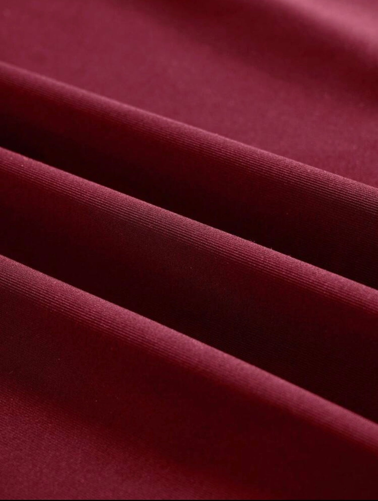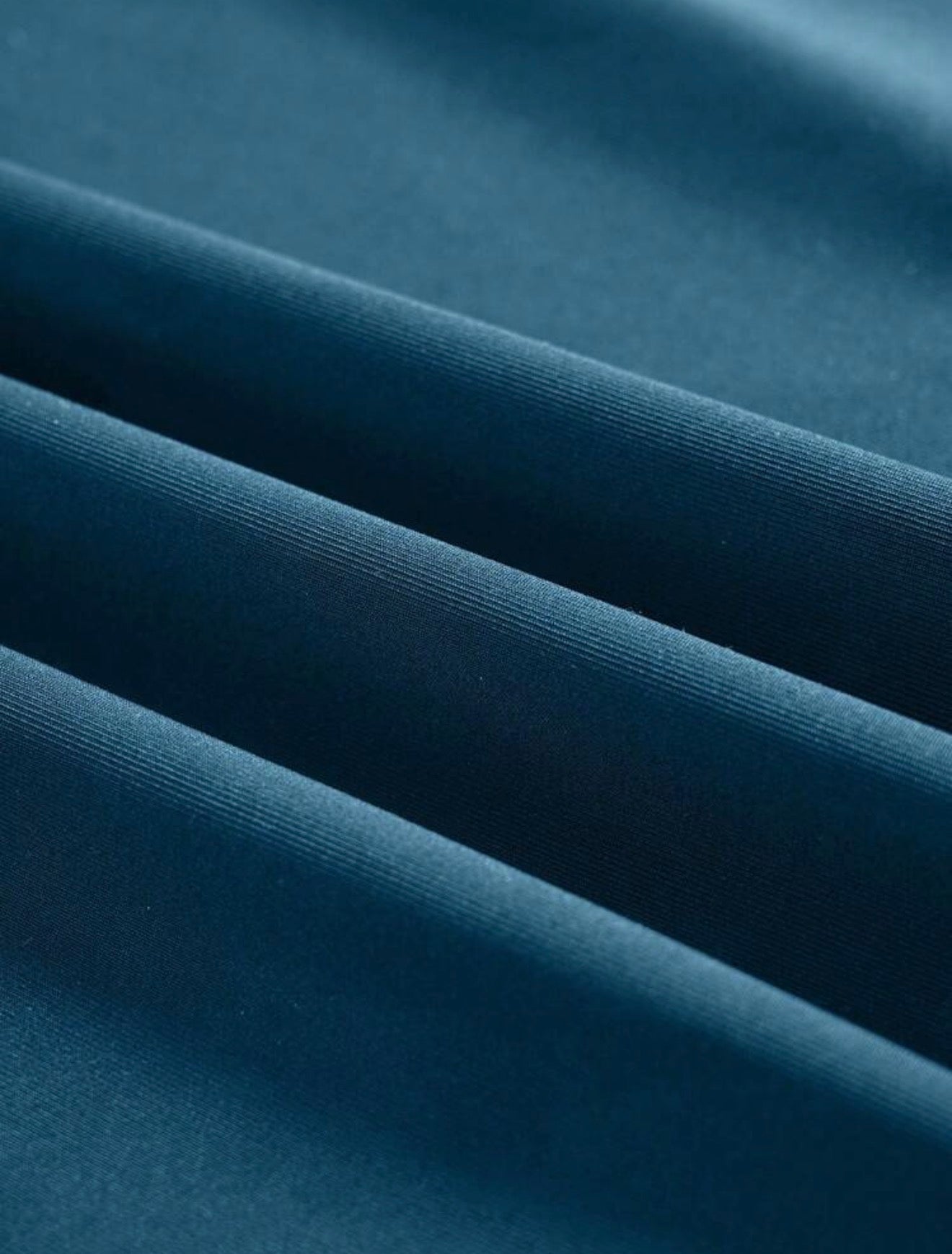 Confeccionado em um mix de 95% Poliéster e 5% Elastano, o vestido tem elasticidade média, garantindo liberdade de movimento com um toque firme e estruturado. O tecido não é translúcido, o que proporciona segurança durante o uso.
